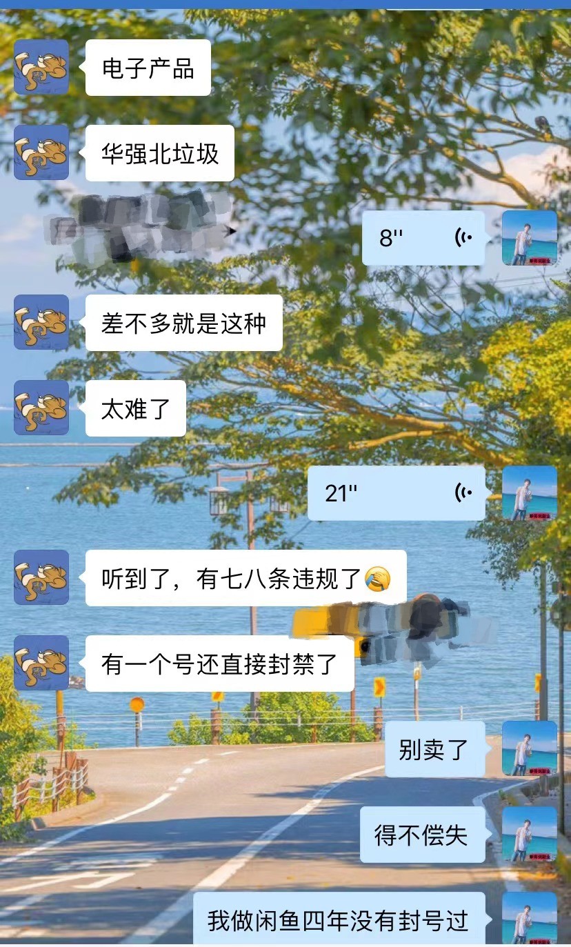 这个小伙伴在闲鱼上卖华强北的数码产品,一个账号违规了七八条,还有一个账号直接封号了。