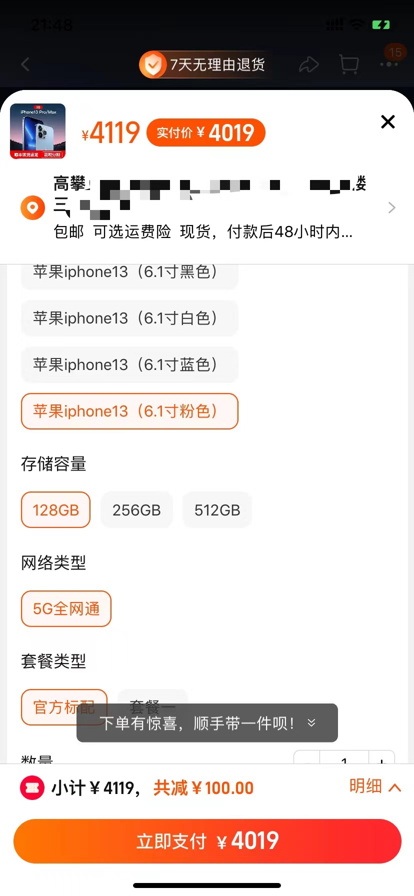 好,那我再问大家一个问题,你猜猜一个全新的苹果13手机128G的是多少钱,就算你一下子不知道是多少钱,那么你大概率会打开手机随便找一个电商苹果搜索一下,比如我以淘宝为例,大家看下图,价格大概就在4000左右,价格浮动基本在100块钱之内