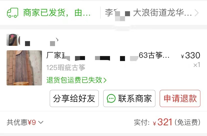 接下来我揭晓一下我那个卖420元古筝的拿货价格是多少钱,大家看下图