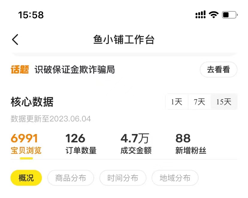 我给大家看这个数据是告诉大家闲鱼做杂货铺是可以做起来的,因为目前网上有有一些博主讲做闲鱼一定要搞垂直店铺,而且你发现让你做垂直店铺的博主几乎都是卖数码产品的,理由很简单,大部分这样的博主都是有数码渠道货源,让你做垂直无非是为了收代理帮他们卖货而已,当然这个模式无可厚非也是很好的一个商业模式,但是我想说的是闲鱼做杂货更适合新人。