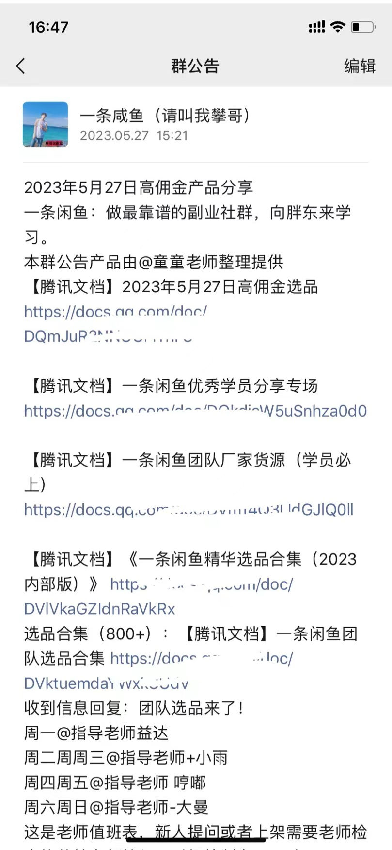 新人小白找货源比较好的几个渠道一个是拼多多(我就是利用拼多多做代发起来的),另外一个就是找到一个靠谱的团队去寻找好的货源,我的团队只做闲鱼卖货,从2019年3月份开始到现在2023年6月5日目前累积了12000+付费学员,所以的确对接了很少部分的厂家货源,简单介绍一波,每个货源的来源对接我都会大概讲一下: