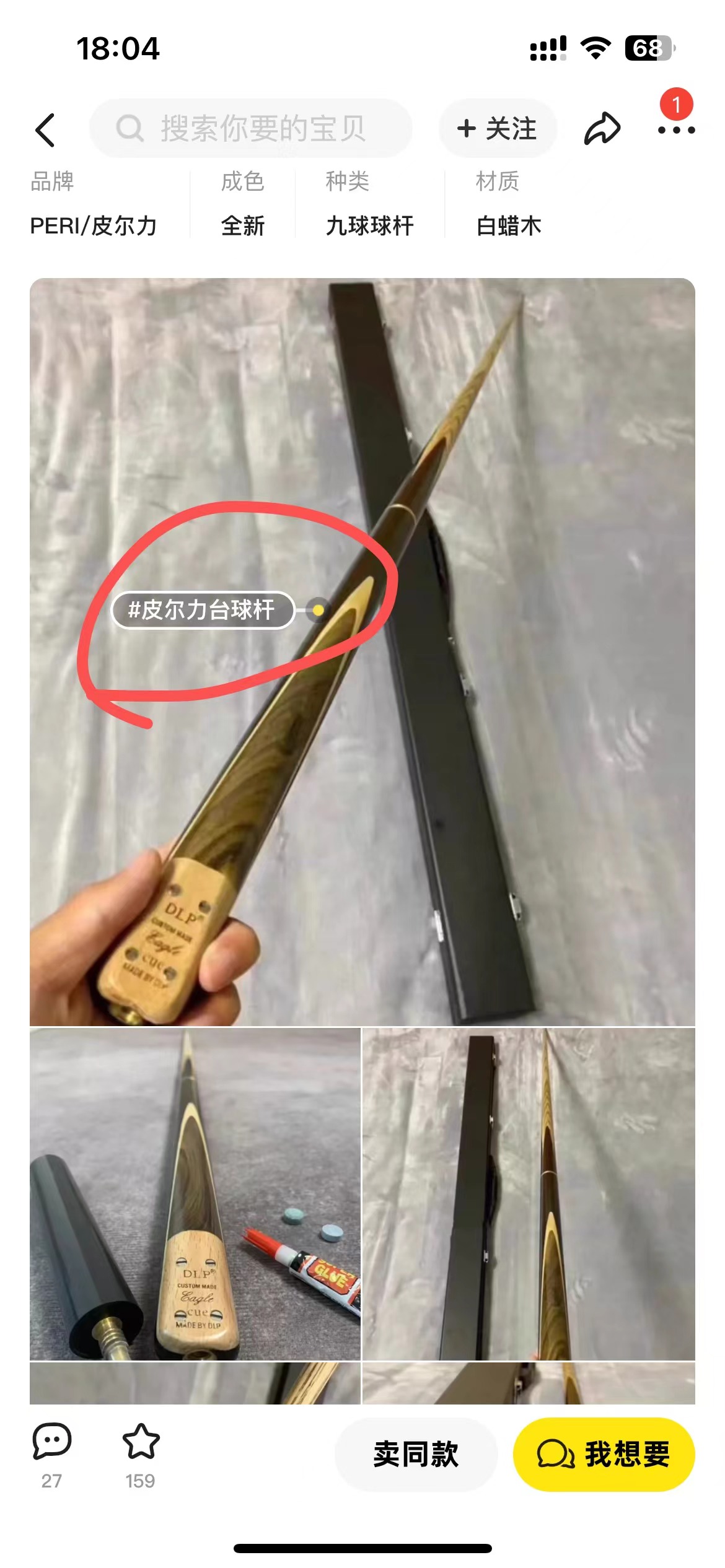 大家看下图,这个是卖台球杆的,因为这个品牌是皮尔力,所以他就写了一个皮尔力台球杆,这个关键词是自己脑子里想的,他没参考任何下拉框词去写,这个逻辑是错误的